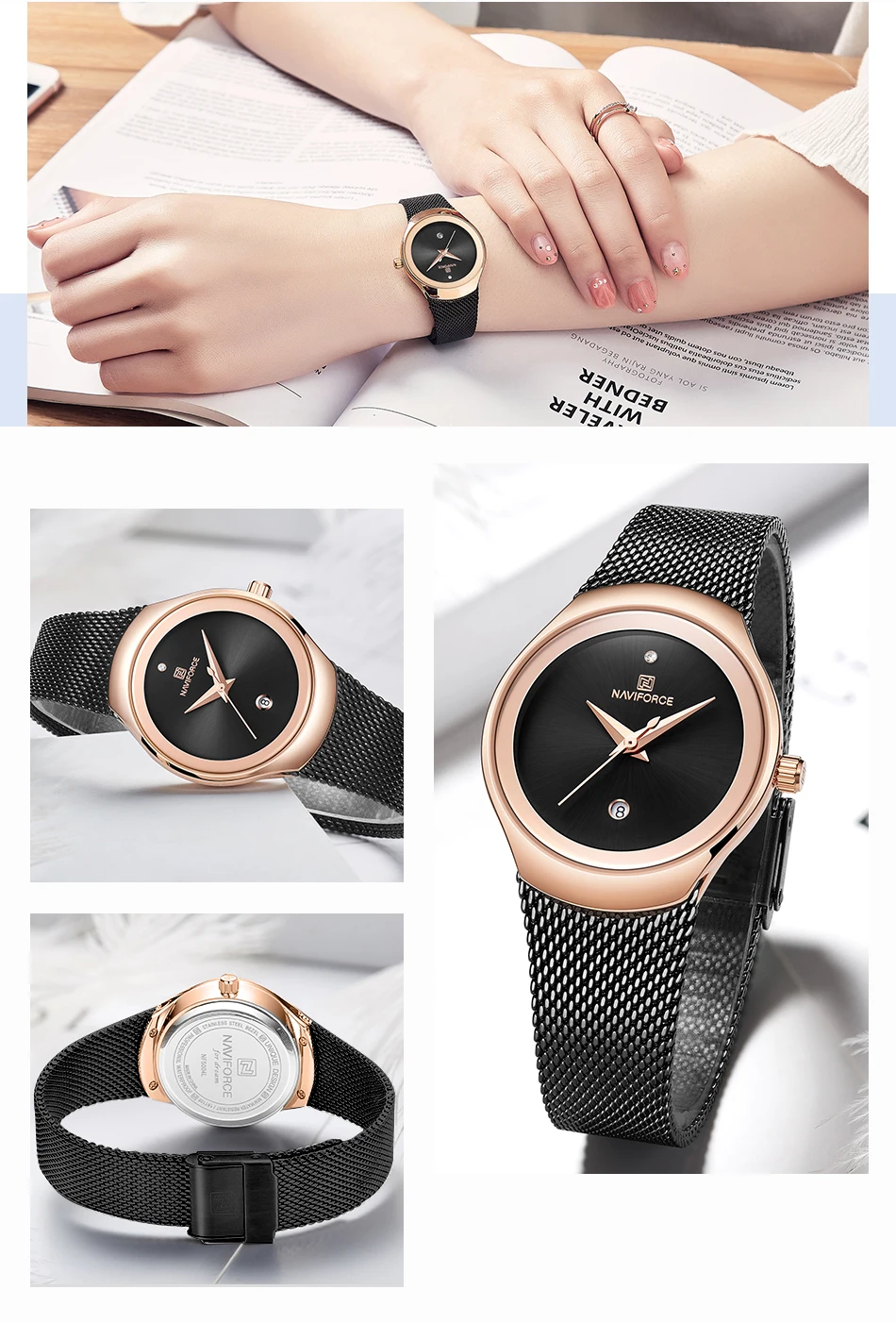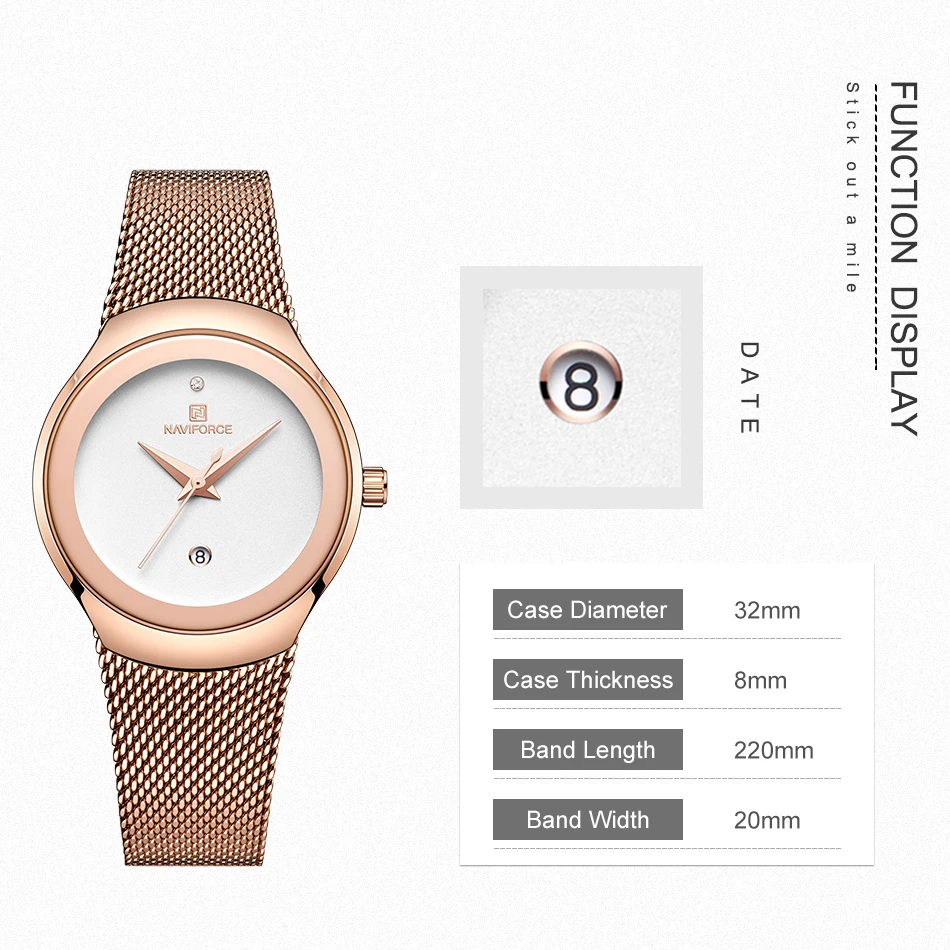 Reloj Mujer NAVIFORCE NF5004 Acero Inoxidable | Cuarzo Minimal con Fecha – Foucault Chile