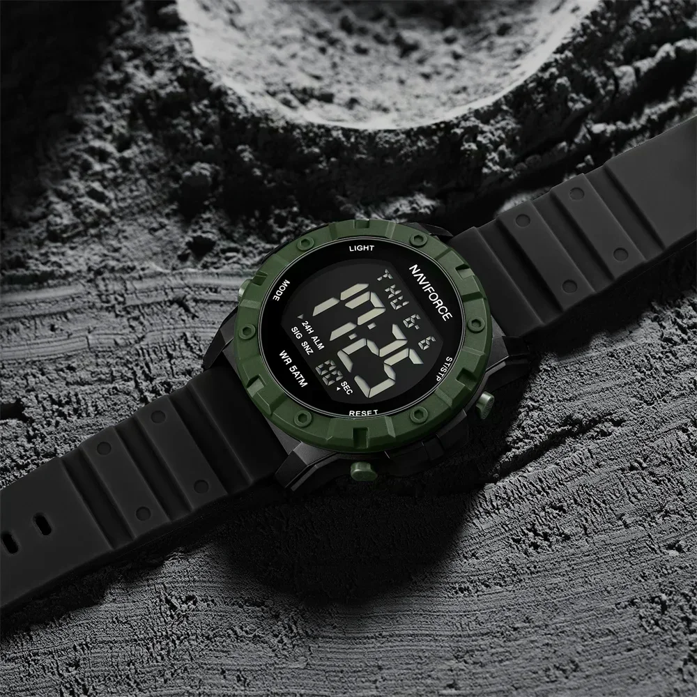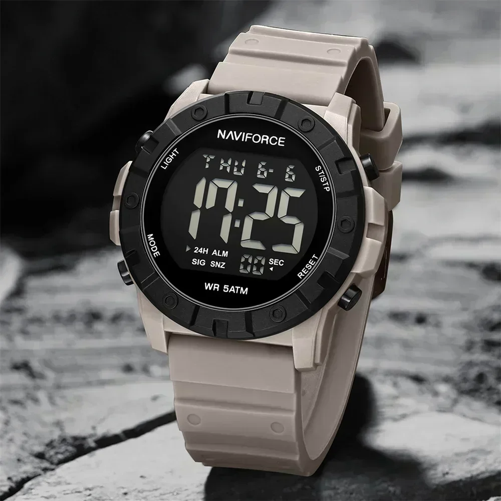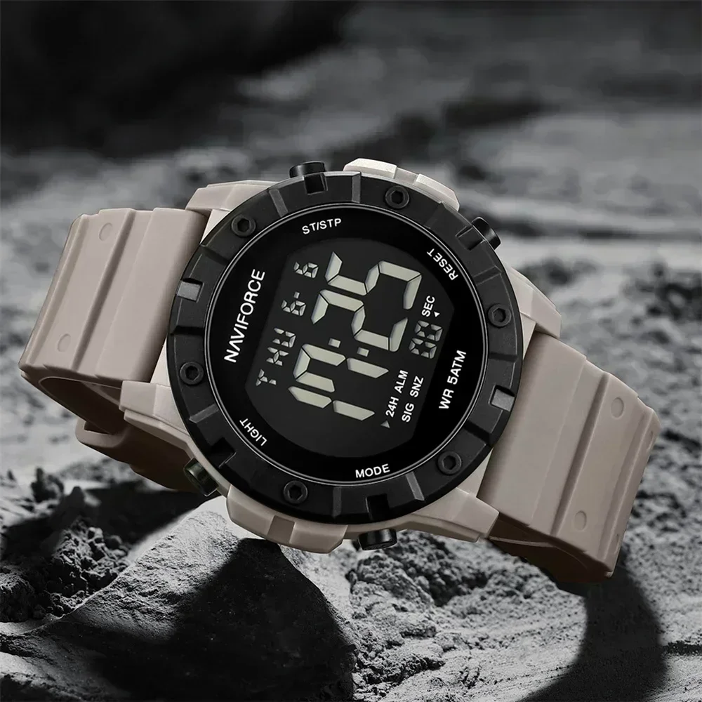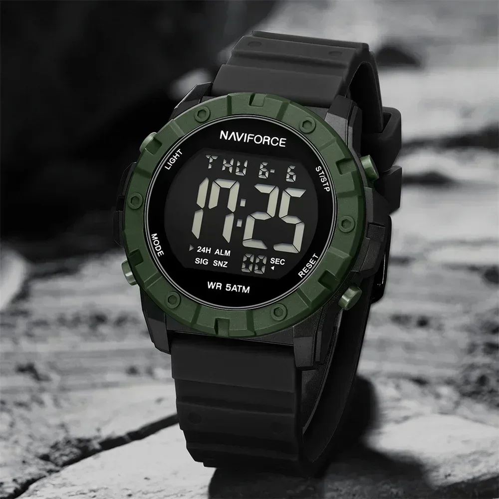 Diseñado para hombres que valoran la funcionalidad, este reloj combina movimiento digital de alta exactitud con estructura deportiva de resina y silicona, garantizando resistencia y comodidad en toda circunstancia.