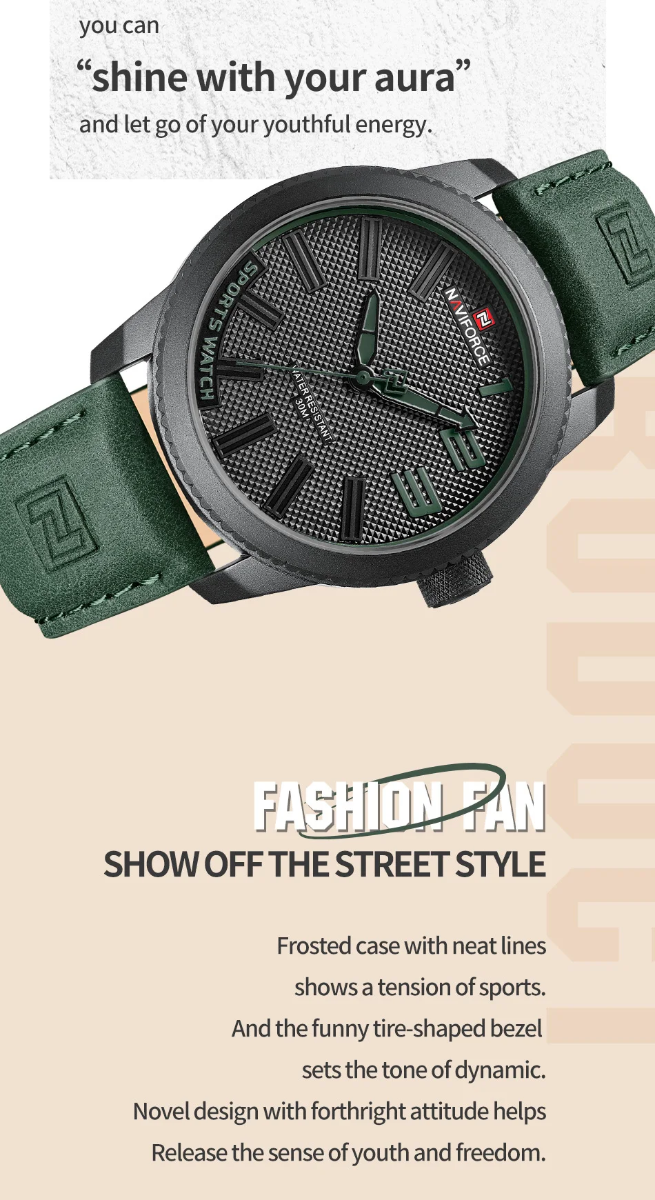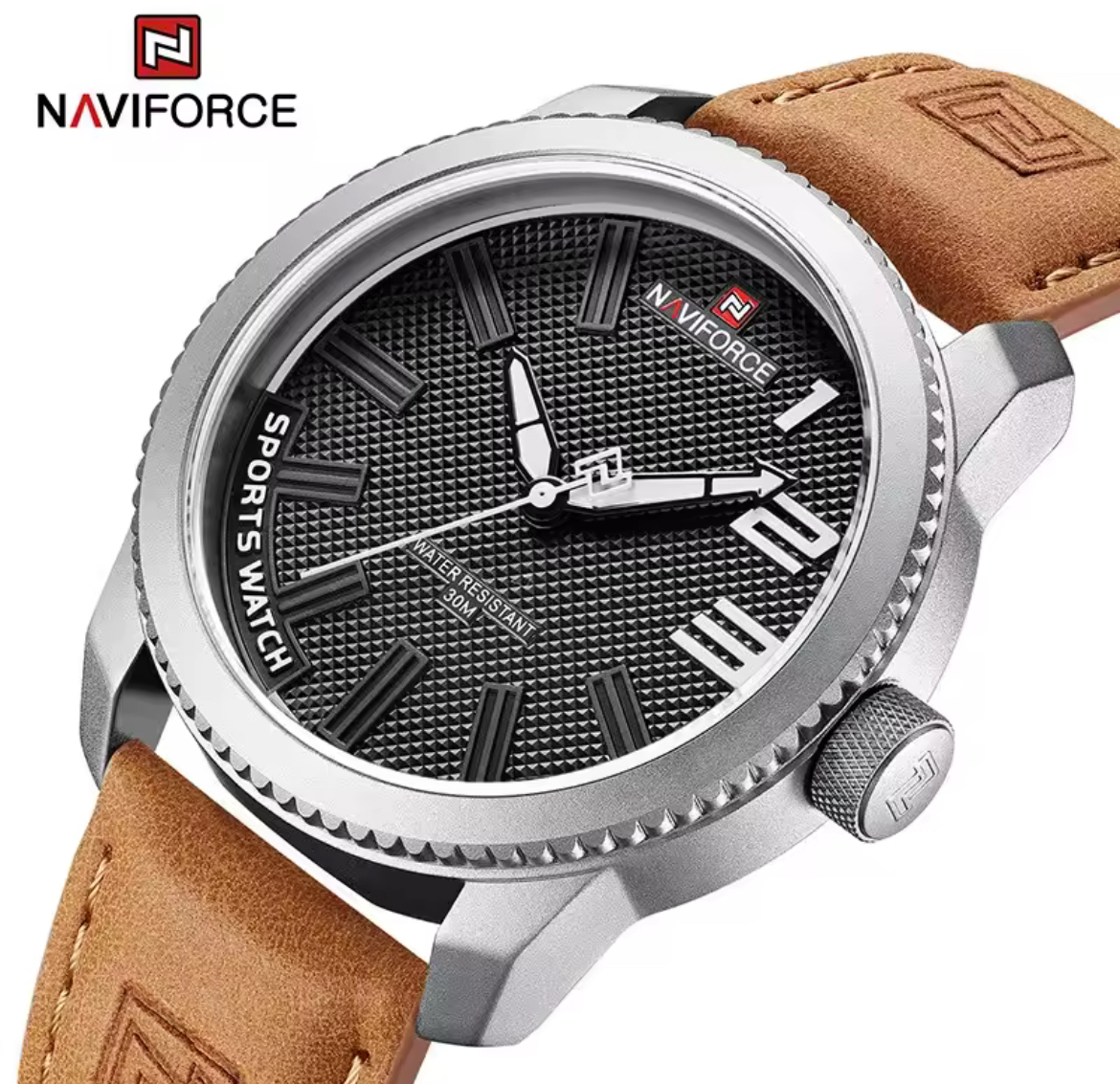 El NAVIFORCE NF9202 es un reloj que combina la potencia de un diseño militar con la elegancia del cuero genuino y Goma.
